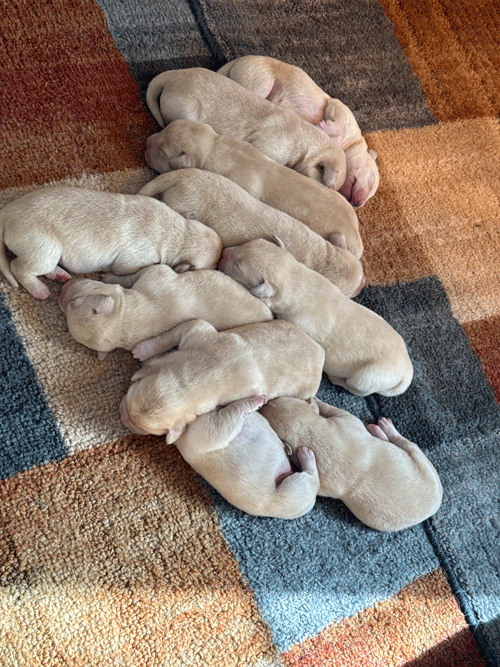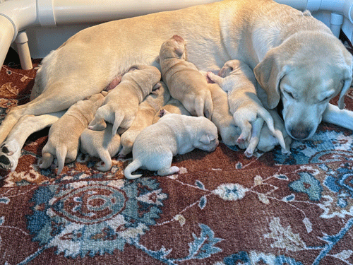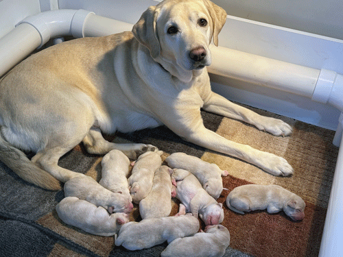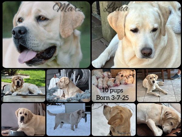 ****************** Puppies Whelped March 7, 2025 *********************************** LUNA delivered her litter of puppies on March 7, 2025. Luna's litter was sired by Marz from Mother Pupper Labradors. Marz can be seen below and at www.motherpupperlabs.com.